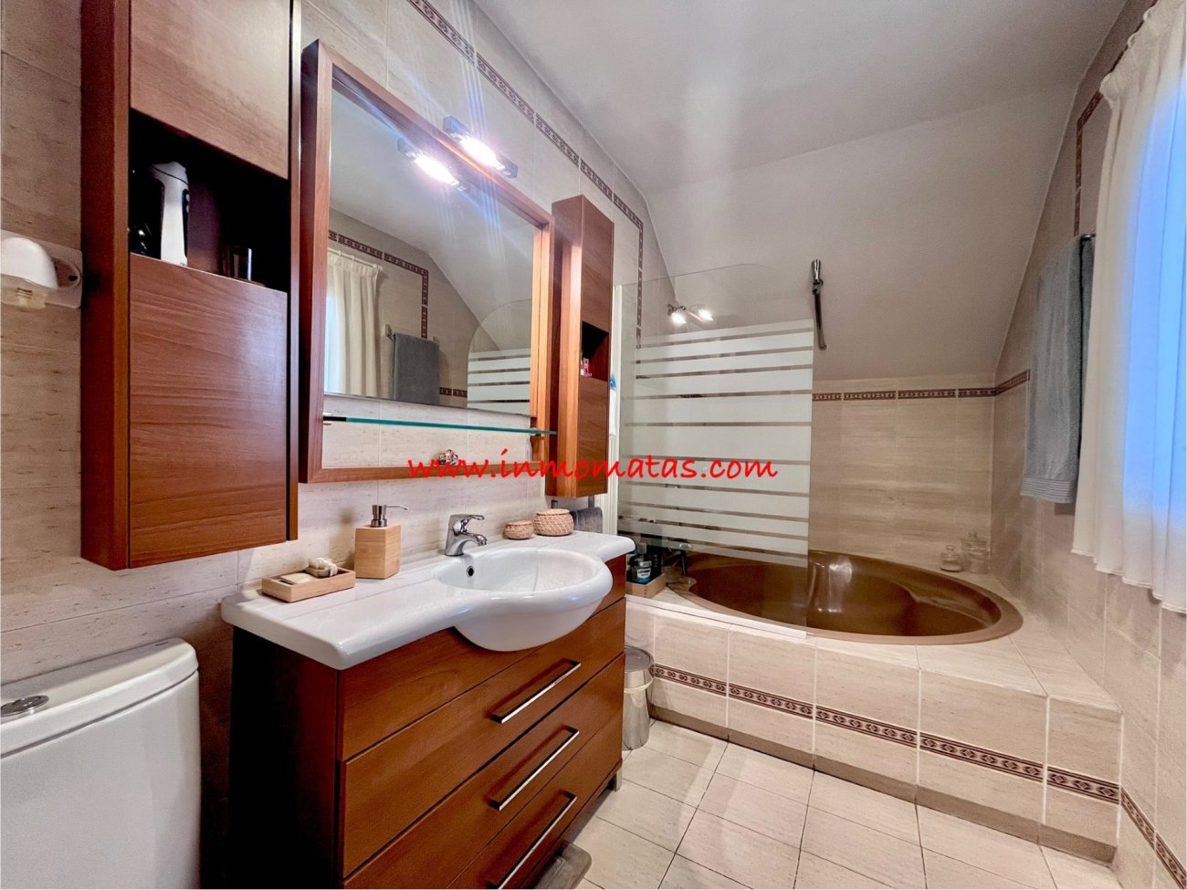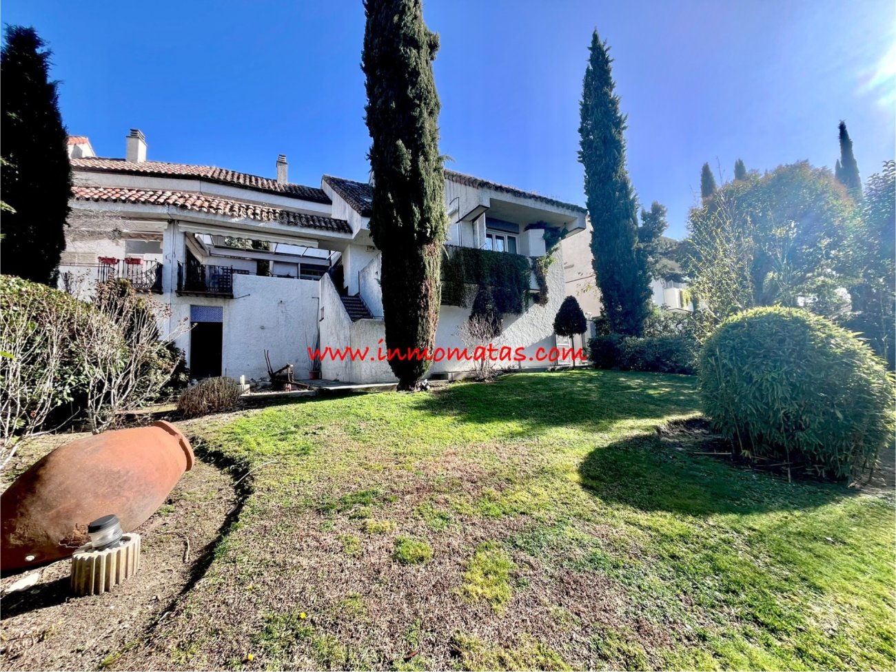 Magnífico chalet pareado de 451 m2 en 3 plantas más acogedora buhardilla sobre parcela de 446 m2. Quedando libre 351 m2 de jardín. Planta principal hall distribuidor que da paso a cocina amplia y luminosa con salida a gran porche, zona de tendedero/terraza, salón amplio con dos ambientes y acceso directo a terraza, sala de estar y aseo de cortesía exterior. Planta alta cuatro dormitorios incluyendo dormitorio principal en suite con baño incorporado y una terraza privada. Los otros tres dormitorios comparten otro baño completo. Buhardilla de 51 m2 dividida en dos ambientes con ventanas velux. Planta jardín, dispone de garaje para dos coches amplios, trastero con posibilidad de ampliar para salón de verano o cuarto de juegos (actualmente en bruto), zona de almacén de 20 m2, despensa, cuarto lavandería, además de aseo exterior. Cocina y baños reformados de hace 10 años, excepto baño principal. Aire acondicionado en sala de estar y en buhardilla. Muy bien conservada. Excelentes calidades tanto exteriores como interiores. Zonas comunes ajardinadas con piscina y pista de tenis para solamente 9 vecinos. Esta vivienda ofrece espacios amplios, es muy luminosa, tiene doble orientación y está ubicada en un entorno único e inmejorable. Zona residencial muy tranquila.